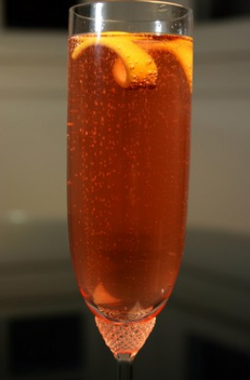 2. Pour 2 tbsp of the triple sec into a champagne glass.